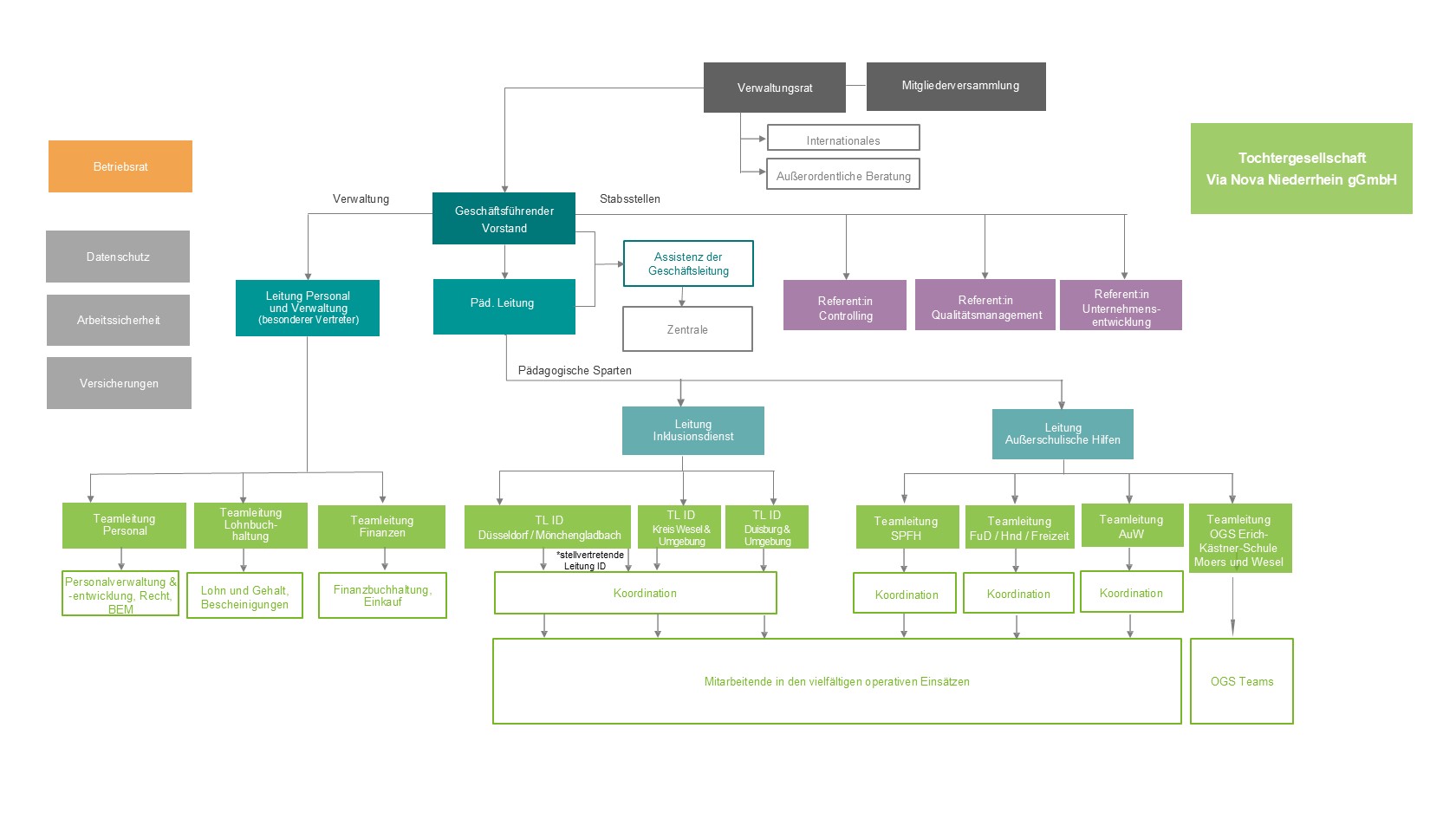Uns verbindet die Vision eines inklusiven Bildungssystems und einer Gesellschaft der Vielfalt. Als gemeinnütziges Dienstleistungsunternehmen begleiten wir seit über 30 Jahren mit ca. 650 Mitarbeitenden Menschen bei ihrer individuellen Entwicklung und ermöglichen unseren Klient:innen selbstbestimmte Teilhabe am Bildungssystem und der kulturellen Gesellschaft. Darüber hinaus unterstützen uns über 100 ehrenamtliche Mitarbeiter:innen bei der Umsetzung unserer gemeinsamen Ziele. Wir verstehen uns als Wegbegleiter und stehen Ihnen in Ihrem Alltag, Ihrer Freizeit und in über 150 Bildungsinstitutionen (Kindertagesstätten, Schulen, berufsbildenden Schulen und Hochschulen) zur Seite. Unser Wirkungskreis erstreckt sich vom Niederrhein über das Ruhrgebiet bis hin zum Rhein-Kreis Neuss sowie den Städteregionen Krefeld, Viersen, Meerbusch, Düsseldorf und Velbert. Der Sitz unserer Zentrale befindet sich in Sonsbeck, unsere Zweigstelle ist in Düsseldorf.